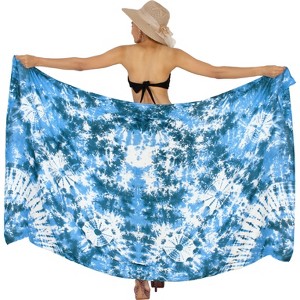 LA LEELA Women's Summer Bikini Wraps Beach Wrap Swimwear Sarong Cover up Skirt Bathing suit Swimsuit Pareo for Women One Size Blue, Tie Dye Design - 1 of 4