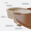 Materials: Made with 100% polyester, machine washable fabric and fill, with an aluminum frame and nylon straps. The tray is made from non-toxic, BPA & PFAS-free, FDA-grade silicone.