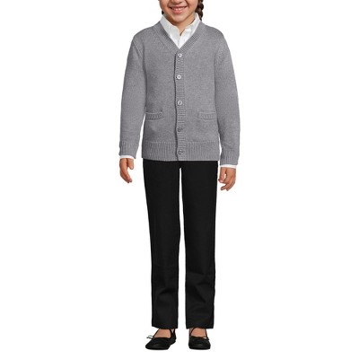 Lands' End Kids Button Front Cable Cardigan - Large - Gray Heather