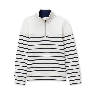 Lands' End Kids Quarter Zip Pullover - Large - Birch/Navy Stripe