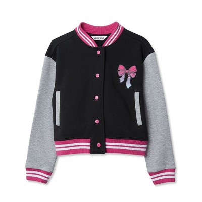 Lands' End Kids Varsity Bomber Jacket - Large - Bow/Black/Gray Heather