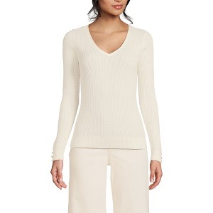 Lands' End Women's Fine Gauge Cotton Baby Cable Vneck Sweater - 1 of 3