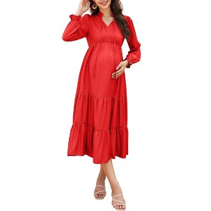 Lantern sleeve layered maternity dress