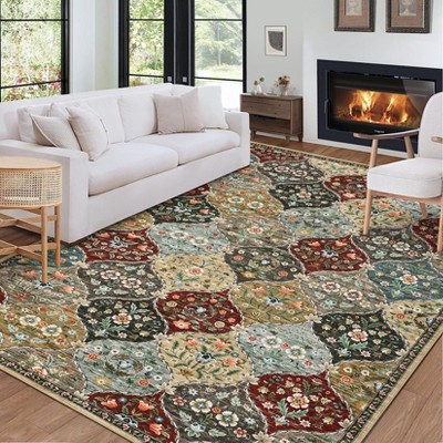 Washable Floral Area Rug – Non-Slip Farmhouse Carpet
