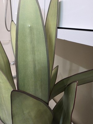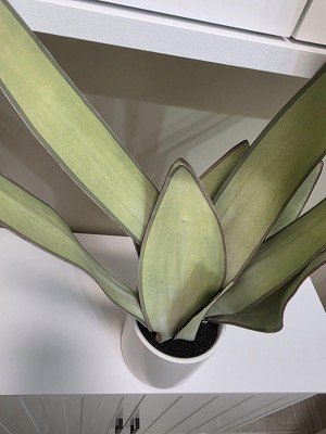 I have (2) "live" Sansevieria plants; They're gorgeous & I absolutely "love" them! However, they require a lot of sunlight; So, I thought this artificial option would be perfect in a guest bathroom but, I was wrong. This is hideous, seriously one of the worst faux plants I've ever seen. I was totally shocked when I received it & I couldn't figure out how the customers made it look so good in their review photos? Bc, in real life; This looks extremely cheap & fake! When I took the photos (attached) for my review, I realized it actually looks better in photos than it does in real life, which is largely due to the leaves appearing pale green; Instead of "lime green" like they truly are? Also, no one else bothered zooming in on this; So, when I purchased it online, I had no idea there are grey-ish/purpley & red outlines printed on each individual leaf? Needless to say; This is a complete waste of $$$ & Total Loss on my end, bc I will not use or display this anywhere! I cannot even give it away bc literally no-one wants it! I don't like leaving bad reviews but what's depicted in product photos & customer photos feels like false advertising or bait & switch compared to the actual product I received!