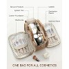 【TWO SIZE OPTIONS】Medium: 9.4×6×6.3 in / Large: 10.6×6.3×7 in. Featuring a roomy interior with 3 segregated compartments, all fitted with multiple pockets, it provides ideal storage solutions for your makeup essentials, toiletries and beauty tools.