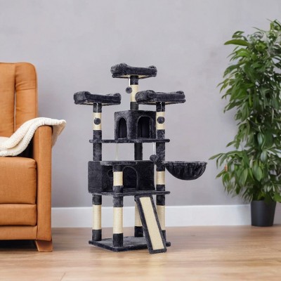- Furniture Saver: Say goodbye to scratched furniture! The large scratching board and posts on this cat condo will save your sofa and wallpaper from your cat's claws.