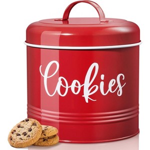 Large farmhouse-style cookie jar, 1-gallon capacity, with a vintage airtight lid, perfect for kitchen storage.