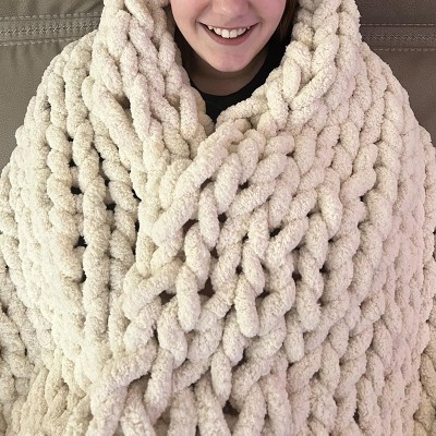 Large Knit Blanket Craft Kit Cream - Mondo Llama™: Finger Knitting Yarn DIY Art Kit for Adults