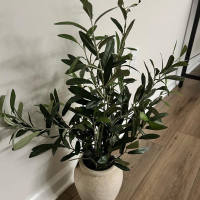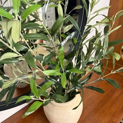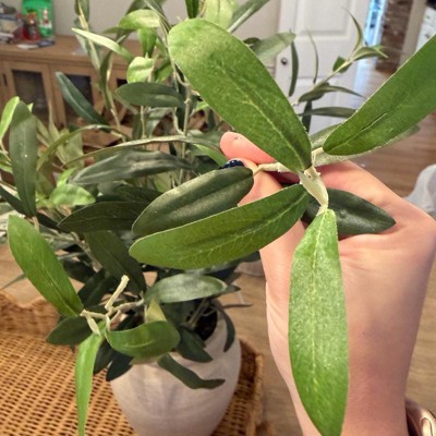 [This review was collected as part of a promotion.] I’ve been looking for a realistic olive arrangement for months and this one is the best I found. The leaves have that perfect dusty green color with the lighter under sides. You see on real trees. From a distance you honestly can’t tell the difference. The 26 inch height is substantial too. It needs a bit of branch bending to make a more natural look. Overall, it’s a great piece of decor that works for any season.