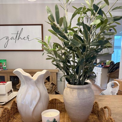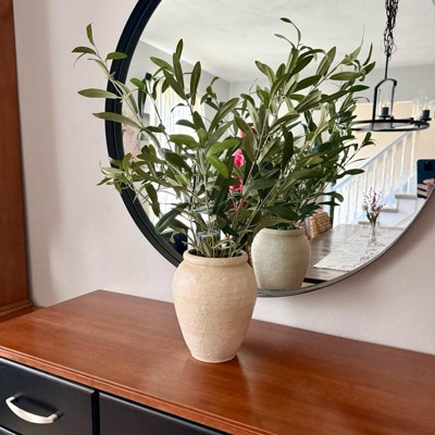 [This review was collected as part of a promotion.] This olive leaf arrangement is stunning. I always feel like a lot of the faux stems look extremely cheap but this one is beautiful. Up close you can tell it isn’t a live plant but from afar it looks like it could be real. The quality of the vase itself is also really great. It is such a nice piece to design alone or with other vases and items