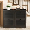 - 【Large Shoe Storage Capacity】Easily accommodate 24-32 pairs of shoes with this large shoe storage cabinet, measuring 9.45''D x 41.34''W x 34.25''H. Four spacious flip-top drawers keep your footwear neatly organized and protected from dust, while the top surface serves as a handy landing spot for keys, wallets, plants, or other entryway essentials—perfect for maximizing shoe cabinet storage for entryway needs
