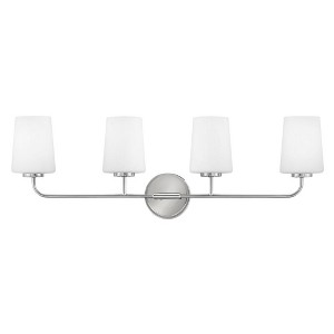 Let’s get down to business. Kline’s minimalist form doesn’t need to make a fuss, thanks to its pared down but supremely stylish transitional profile. Keeping things architectural, Kline’s super slim elongated arms unite with sleek glass shades in finishes that add just the right edge. Material: Steel, Finish Color: Chrome, Width: 33", Height: 11", Depth: 6.25", Height From Outlet Box: 8.5", Backplate Width: 5", Backplate Length: 5", Lamping Type: LED, Number Of Bulbs: 4, Wattage: 12 Watts, Dimmable: Yes, Moisture Rating: Damp Rated