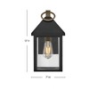 Cool, calm, and collected, Rhett’s features exude quiet satisfaction. The tall panes of glass find ample stability under the oversized pyramid roof, with a top loop finishing off the transitional lantern design. The combination of Black and Burnished Bronze elements brings charming, trend-setting vibes to any neighborhood. Material: Aluminum, Finish Color: Black, Width: 7", Height: 13", Length: 8.5", Depth: 8.5", Height From Outlet Box: 6.75", Backplate Width: 4.75", Backplate Length: 6.25", Lamping Type: LED, Number Of Bulbs: 1, Wattage: 12 Watts, Dimmable: Yes, Moisture Rating: Wet Rated
