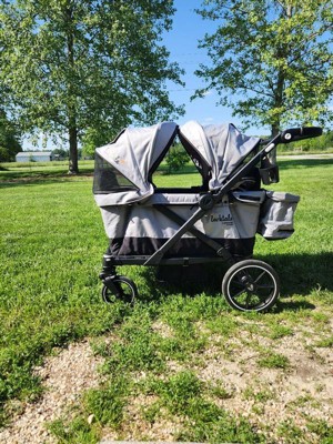 I bought this about a month ago and it is a game changer I have a 6 month old and 4 year old that can get lazy. This is the perfect wagon so spacious and I love all the add ons. The only downfall for me is how heavy it is.