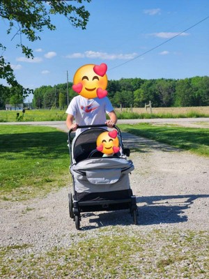 - Dual multi-position sun canopies each feature a zippered canopy extension with airflow panel, and a peek-a-boo window.
