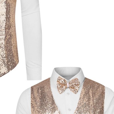 Lars Amadeus Men's Disco Shiny Sequin Sleeveless Suit Waistcoat Set with Bow Tie 2 Packs - 1 of 4