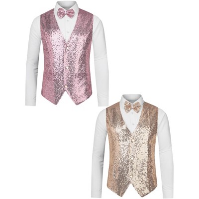 Lars Amadeus Men's Shiny Sequin Sleeveless Suit Vest Set with Bow Tie 2 Packs - 1 of 4
