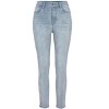 These light-wash jeans are a modern twist to an everyday style. * High-waisted and skinny-leg style * Embroidered trim down the sides of the legs * Button zipper front closure * Front and back pockets * Stretch denim fabric * Belt not included * Inside leg length approx. 28 inches * 60% Cotton, 38% Polyester, 2% Elastane. Imported. * Machine washable