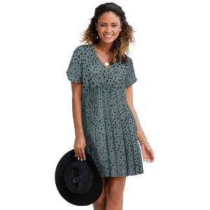 Women's Print V-Neck Dress - LASCANA - 1 of 4