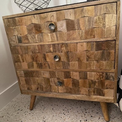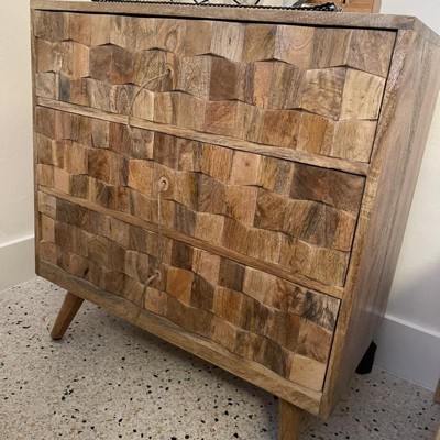 Take your interior space to the next level with an accessory that gives your home an edgy upgrade of exceptional design. Created for both functionality and impeccable style, this Christopher Knight Home Latona Mid Century Modern 3 Drawer Chest effortlessly brings a chic mid-century modern atmosphere to any space with an impressive 3D tile weave design and a sturdy wood frame. Completed with three drawers for ample storage space, this impressive Christopher Knight Home Latona Mid Century Modern 3 Drawer Chest provides all sorts of options to remove clutter that will have all your guests in awe of your décor.