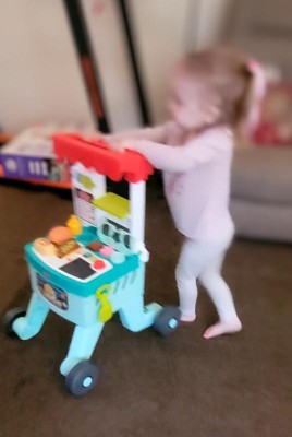[This review was collected as part of a promotion.] this is absolutely the most adorable shopping cart/ food stand/ food tray! the kids ages 2-4 enjoy playing make believe chefs and with the lights and sounds it's all more authentic. great for coordination skills. colorful. not hard to put together. a real winning product.