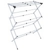 Introducing the ultimate solution for all your drying needs – our expandable drying Rack. With over 25 feet of hanging space and 11 expandable bars, this rack is designed to handle your largest laundry loads with ease. Its innovative expandable design allows you to double its width when needed, providing even more space for drying clothes, towels, and linens. When not in use, simply collapse it down for convenient storage, saving you valuable space in your laundry room or closet. Crafted from lightweight materials, this drying rack is easy to move around, making it ideal for both indoor and outdoor use. Whether you're air-drying delicate garments or simply need extra space for your laundry, our expandable drying Rack is the perfect solution for your home. "