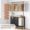 Laundry Sorter 3 Section Laundry Hamper Sorter with Clothes Hanging Rod and Wooden Storage Shelf for Laundry Room, Black