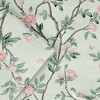 A full roll of this product is 20.5 inches wide and 396 inches long. A full roll can cover up to 56 square feet depending on the design match and pattern repeat. A sample of this product is 8 inches by 11 inches. Charming and soft, the Eglantine wallpaper is sure to impress. The beautiful sweetbrier rose design against a soft eau de nil background provides botanical bliss. This wallpaper features beautiful flowers and buds on climbing branches. The botanical print is accompanied by birds flying and sitting on the branches. Adding an air of French opulence has never been easier. Offers a smooth, untextured finish. Offset match with a 20.87 inch pattern repeat.