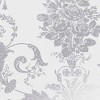 A full roll of this product is 20.5 inches wide and 396 inches long. A full roll can cover up to 56 square feet depending on the design match and pattern repeat. A sample of this product is 8 inches by 11 inches. A Laura Ashley classic, Josette is an ornate and elegant damask. Featuring glamorous chandeliers and romantic rose bouquets, this wallpaper is undeniably elegant. Our French-inspired damask design adds a contemporary edge in sparkly silver metallic tones that is sure to add class to any living space. Offers a smooth, untextured finish. Straight match with a 25.2 inch pattern repeat.