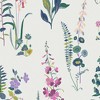 A full roll of this product is 20.5 inches wide and 396 inches long. A full roll can cover up to 56 square feet depending on the design match and pattern repeat. A sample of this product is 8 inches by 11 inches. Playful and sweet, the Meadowvale Sprigs print is a botanical style design featuring bunches of alliums, harebells, ferns and various garden flowers. Straight match with a 20.5 pattern repeat. Offers a smooth, untextured finish. Non-woven wallpaper, won't shrink or expand over time.
