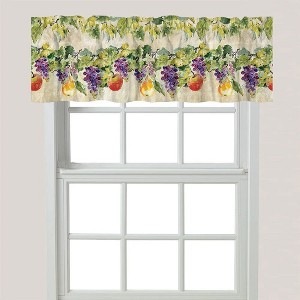 This fruit harvest "Palermo" window valance creates an essence of Italy in any room in your home. The design will add a classic touch of Italian decor for your home. Vibrant, watercolor fruit overlays a tan colored, sponge painted background, while rich hues of purple, green, and yellow fill this window valance with color.This design is sure to make you feel like you're in an Italian villa.