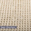 - Each waffle knit bath mat is made of polyester, with a plush 1000 GSM thickness that is soft to the touch, while the yarn construction allows for increased absorbency to soak up excess water