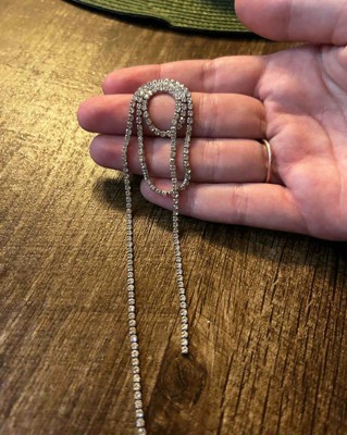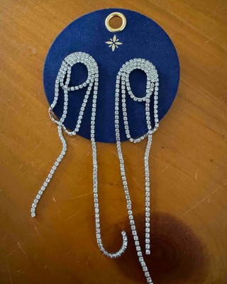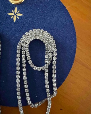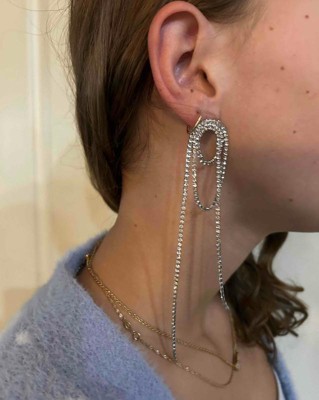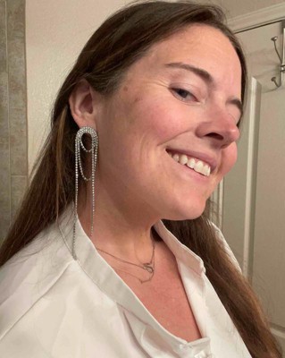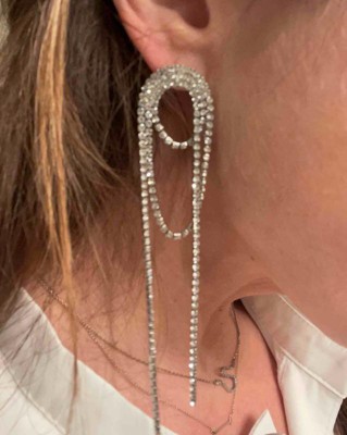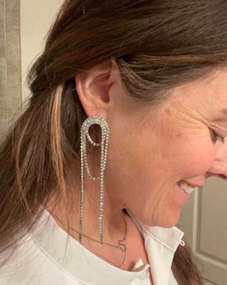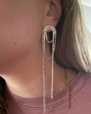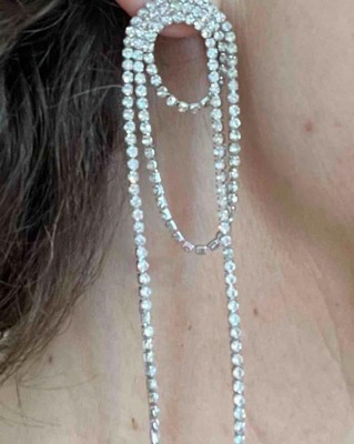 I love these long rhinestone statement earrings because they do just that, make a huge statement with modernness and can dress up any outfit. They are a little long so if you have long hair maybe tuck back. I received an incentive to write this review.