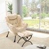 Relax in ultimate comfort with this large lazy chair featuring soft, fluffy PP cotton cushioning that retains its shape even after long hours of sitting The durable polyester fabric cover resists daily wear and tear, ensuring long-lasting use The included ottoman enhances your lounging experience, acting as a foldable footrest that can also serve as extra seating or a convenient stool for entryways Easily fold and store the ottoman when not needed Ergonomically designed with a curved backrest that supports your spine at the perfect angle, this accent chair also includes a handy side storage pocket for books, phones, or remotes Built on a strong steel frame with powder-coating and reinforced by a middle support tube, the chair supports up to 400 lbs Non-slip foot covers protect your floors while adding stability Lightweight and stylish, this chair is versatile enough for living rooms, bedrooms, dorms, balconies, or offices and complements modern home d¨¦cor perfectly Dimensions & Features: Cushion: Soft PP cotton, fluffy and durable Upholstery: Long-lasting polyester fabric cover Ottoman: Foldable footrest, portable and multi-functional Frame: Strong steel with powder coating and middle tube support Weight Capacity: Up to 400 lbs Features: Ergonomic curved backrest, side storage pocket, non-slip foot covers Color: Light sage Ideal for: Living room, bedroom, dorm, office, balcony What You Get: 1 Lazy chair with plush cushioning, 1 foldable ottoman, removable covers, and user instructions After-Sales Service: We provide assembly guidance and responsive support to keep your chair comfortable and durable for years