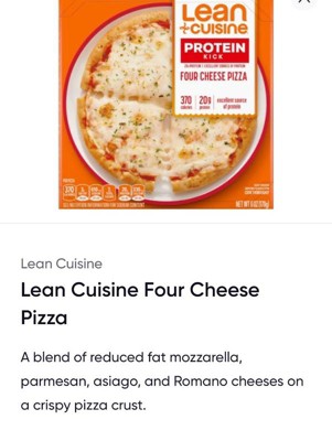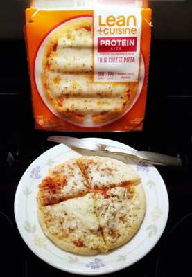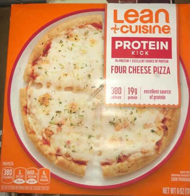 - A KICK IN THE RIGHT DIRECTION: Lean Cuisine Protein Four Cheese Pizza frozen meals feature mozzarella, parmesan, asiago, and Romano cheeses.