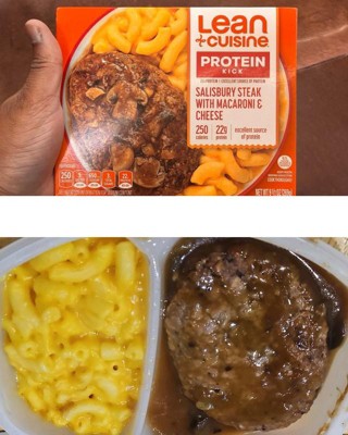 Progress never tasted this good -- Lean Cuisine Frozen Salisbury Steak with Macaroni and Cheese is a quick, satisfying option for busy weeknights or effortless frozen lunches. Our Salisbury steak is complemented with a creamy mac and cheese for real comfort you can feel good about. Whenever you're searching for perfectly portioned meals that fit into your routine, think of Lean Cuisine. Whether you're stocking up on convenient frozen dinners or looking for diet food that fits your meal plan goals, Lean Cuisine makes it easy to stay on track. This dish has 21g of protein, making it a meal you can count on to help hit your macros. Simply microwave and enjoy — no prep, no cleanup, just smart eating made simple.