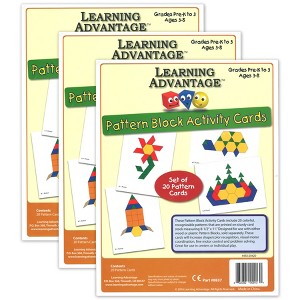 Learning Advantage® Pattern Block Activity Cards - 20 Per Set - 3 Sets | Great for use at centers! These pattern block cards are an excellent tool to help children build an understanding of shapes, which will enable them to more easily grasp complex geometric concepts later in their education. Each set includes 20 colorful patterns, printed on 8-5/8" x 11" sturdy card stock. Sold as 3 sets for a total of 60 cards.