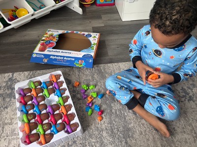 [This review was collected as part of a promotion.] My son is 3 years old and this alphabet acorns set has been a great tool for learning while playing. Each acorn has a letter and a matching figure inside, which helps so much with visual and motor skills. It's colorful, sturdy, and super fun. He loves opening and closing the acorns and sorting the objects by color and letter. I really recommend this for little ones learning the alphabet.