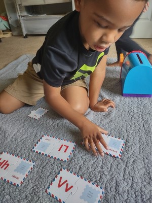 [This review was collected as part of a promotion.] My 4.5 enjoyed playing with toy. He is learning his letters so having a visual to put lowercase and uppercase together is great. The cards are not super durable so my son bent a few trying to put them into the mailbox. There are a few random words for the letters which don't make sense, but for a child just learning letters it's great.