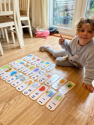 This is now my daughters favourite puzzle!! The box is quite big compared to the puzzle pieces so we have got rid of that and just put them in a pile on the games shelf, because they are thick and sturdy they stay together well. My daughter started reception this year so has been learning letters, she has enjoyed using this puzzle so much. She is so please with herself when she is able to match them up, she's not learning capital letters at school yes but the more she plays this the more she recognises them too. She also really likes the pictures on each card. She enjoys choosing 3 letters to complete at a time (all 26 would be to much yet) and lining them until they are all completed. It's a great way to help teach letters and phonics.