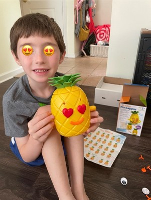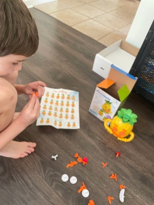 [This review was collected as part of a promotion.] We used this toy to help my 5 year old express his emotions and feelings. We had fun as a family changing the pineapple's fsce to match my son's feelings at the moment. It was pretty hard to keep track of all of the pieces that came with the toy since they were pretty small.