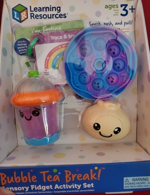 [This review was collected as part of a promotion.] This is such a cute little toy! Great for my 4 yr old and even has a booklet with little activities to do with the sensory toys and another booklet that helps teach emotional intelligence to kids. They can point to a face on the pop it to show what they're feeling and I think that's a great alternative if they're struggling to use words. Only thing is I wish the bubble tea toy did a little more, my daughter kept wanting to open it and get the sand inside. Lol