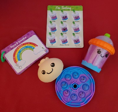 [This review was collected as part of a promotion.] Super cute use of fidgets in a more meaningful way. The theme is very on trend and my 3.5 year old loves all of the different pieces. The set allows for a great beginner discussion of emotions. I was skeptical if it would feel worth the price for 2 pieces being dollar store items, but the quality is there and the unique bubble tea cup and cards add more to the value.