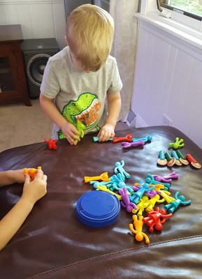 [This review was collected as part of a promotion.] I would highly recommend this product. My 5 year old and 3 year old love playing with them and connecting the people together. They like to make patterns out of the different colors as well. My 1 year old is able to grip them easily and loves taking them in and out of the container. This is a toy that will definitely get a lot of use, but is educational at the same time. Highly recommend!