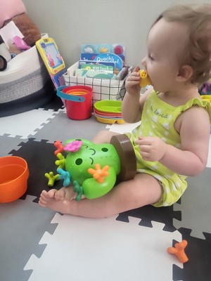 [This review was collected as part of a promotion.] My baby LOVES this cactus! She loves the colorful flowers and thorns that come with it. The first day it arrived, she played with it all day long. She even brought it with her to the car. She loves storing all the pieces inside the cactus. It's helped her with her hand movement precision. Buy this toy for your kids! They'll love it!