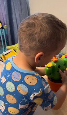[This review was collected as part of a promotion.] Carlos the count & pop cactus has easily become one of my daughter's favorite toys to play with. She doesn't usually play with her toys longer than 10 minutes but this one seemed to grasp her attention since it has so many ways to interact with it. The ridges on the flowers fit nicely in a toddlers hands and I love how the base stores all the pieces nicely. My only complaint is that the toy is somewhat light weight so it easily tips over. Its not much of a deal breaker for me though since my daughter loves the toy. (I did receive the product for free in exchange for writing the review)