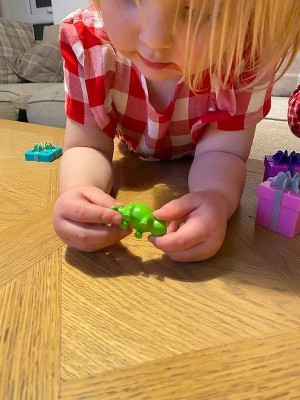 [This review was collected as part of a promotion.] I use this product in my speech therapy practice. I hide words and numbers inside the boxes, and when the kiddo opens it, he has to say the word as many times as the number says, so we get lots of repetitions. So far this has been very motivating to my kiddos, and I have been able to use this toy in many ways. The only thing I don't like about it is how hard the plastic presents are. Sometimes my kids throw them, and I'm afraid they will break. I would like them to be the softer plastic, like the little toys inside.