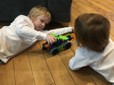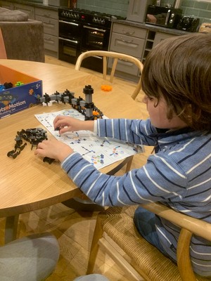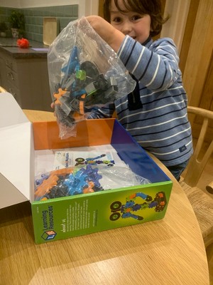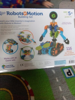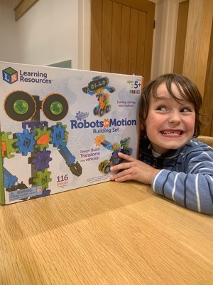 I ordered this to play with my two boys, who are 3 and 5 years old. Both boys have a range of different construction toys and are always building things together, so when I saw this set, I was automatically drawn to it. This is the first construction toy we have used that is made nearly completely from gears, and I was so surprised at how easy it was to assemble and how simple the instructions were for my 5 year old to follow. After building 2 different robots, my youngest decided he would like a flying car, and together they were soon building all sorts of fantastic creatures and vehicles! The colourful gears push together and interlock easily, and seem very sturdy so even my 3 year old can easily use it. I am very impressed with the learning capability of this set and it definitely seems to be keeping my aspiring young engineers very busy and interested. This Robots in Motion set comes with 116 pieces, so has plenty of scope for young imaginations, but is fully compatible with all of the Learning Resources Gears range if you want to add to it, which we will definitely be doing! As a parent, I also like the fact that the box is very sturdy and the pieces all store back into it easily. My children have really enjoyed playing with this set over the last few days, and I even caught my husband secretly building them a robot last night! My only negative about this set is that it only comes with the instructions for 3 robots inside the box. Learning Resources have obviously thought this through, and have kindly put instructions for other robots on their website, but personally, I think my son would of preferred to of had them inside the box with the others so he could of started building them straight away. Other than that, I would very highly recommend!