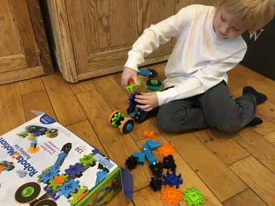 My 6 year old boy loves this product he spends time putting robots together and then pulling them apart, he really enjoys how the cogs work and giving the robot big yellow eyes. This product really encourages fine motor skills in young children, getting them to think about how things work together.